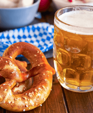 With a golden-brown crust, chewy interior, and sprinkled with coarse salt, pretzels are the iconic German beer companion. To make at home, knead 500g of strong white bread flour with 7g of yeast, 1.5 tsp of salt, 1 tbsp sugar and 300ml warm water to make a soft dough. Let it rise for an hour. Divide into eight portions, roll into a sausage, and make a pretzel shape. Boil for 30 seconds in water with 3 tbsp of baking soda. Bake at 220°C for 15 mins, then sprinkle with sea salt and serve warm.
